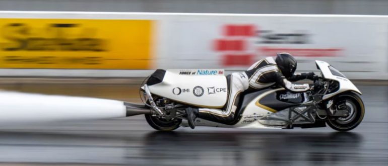 На мероприятии Festival of Power в британской деревне Подингтон (Podington) в графстве Бедфордшир на трассе Санта Под (Santa Pod) для соревнований на ускорение по прямой уникальный мотоцикл на…