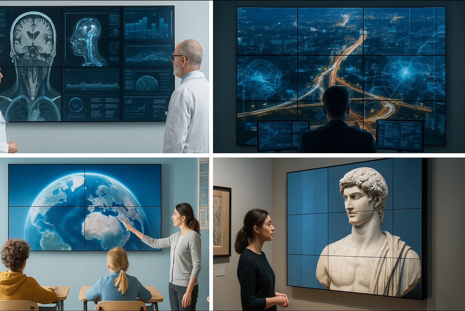 В медицинских учреждениях видеостены применяются для телемедицины, обучения врачей и анализа сложных случаев. Врачи могут просматривать медицинские изображения в высоком разрешении и обмениваться данными в режиме реального времени.