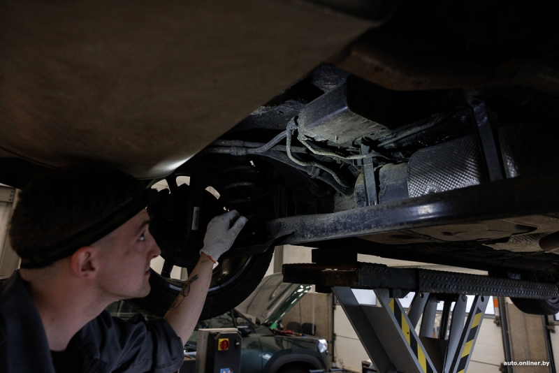 И хотя мы не настаивали, специалисты «Атлант-М» устроили нам полную проверку — мало ли, чем разочарует машина после зимы. Поэтому автомобиль с ходу загоняется на подъемник: специалист осматривает кузов, днище, крутит колеса, подсвечивает фонариком элементы подвески. Серьезных очагов коррозии не найдено (неудивительно, ведь все добротно обработано «антикоррозийкой»), ходовая тоже без нареканий. Специалист обратил внимание на то, что тормозные колодки «живы» лишь наполовину, но, по его прогнозам, до четвертого планового ТО они дотянут, поэтому нестрашно.